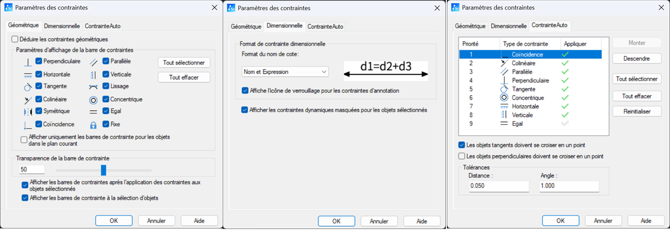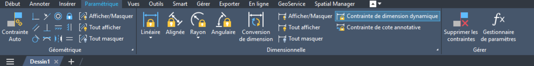 Il permet de définir des contraintes géométriques, des contraintes dimensionnelles / paramètres de contraintes dimensionnelles, ainsi que des contraintes automatiques.