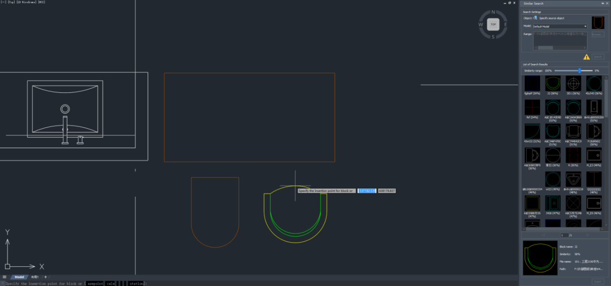 | Blocs intelligents | Trois nouvelles fonctionnalités ont été implémentées : Recherche, comptage et remplacement intelligent des blocs. Création automatique des blocs par reconnaissance des objets (y compris les objets pivotés et mis à l'échelle). Une fonction de recherche graphique similaire a été ajoutée pour faciliter la réutilisation des dessins historiques. |