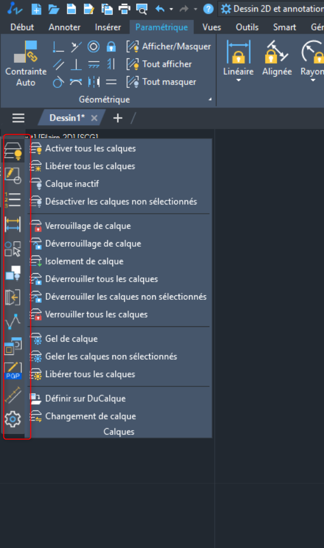 - ✔ Exécutez la commande LAYSWITCH pour définir des raccourcis permettant des actions rapides sur les calques.