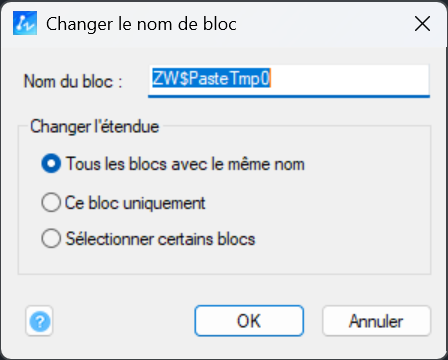 - · Les utilisateurs peuvent définir un nouveau nom de bloc et un point de base, ou simplement modifier le point de base sans changer le nom du bloc.