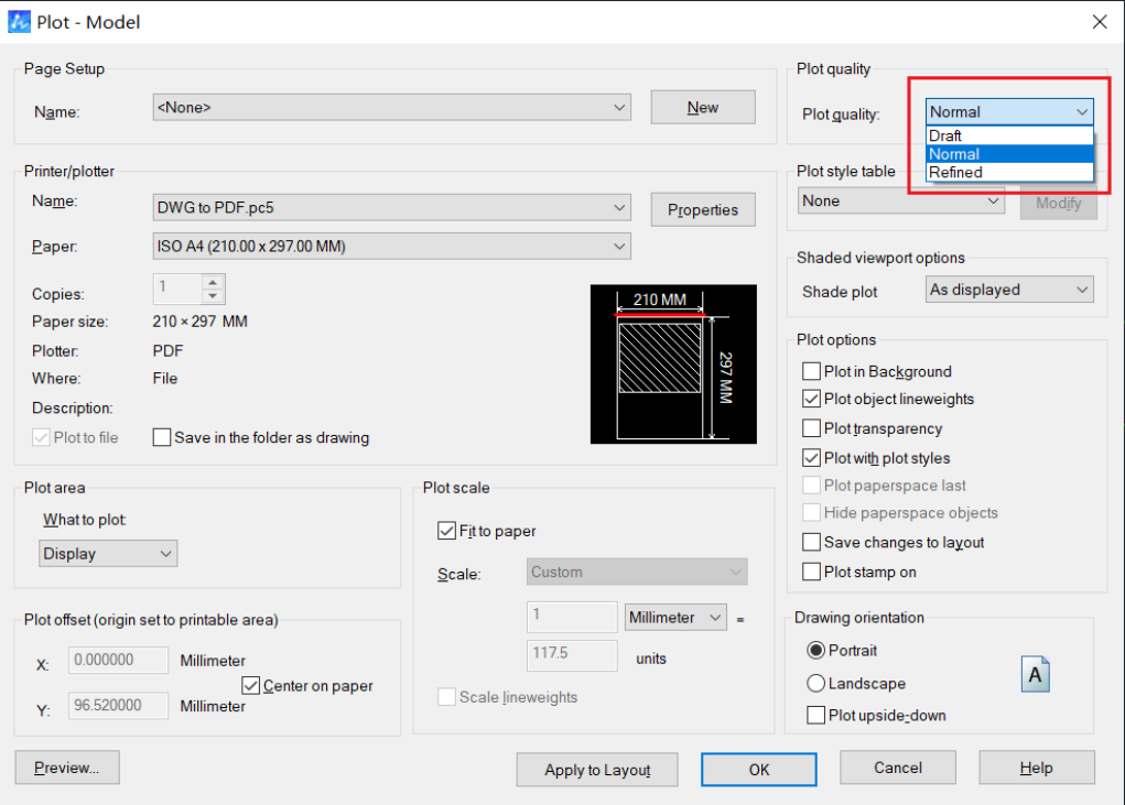 La taille des fichiers PDF et DWF générés par ZWCAD a été réduite, avec un taux de compression supérieur à 50 % pour les fichiers graphiques complexes. Une nouvelle option de qualité d'impression a été ajoutée, permettant de spécifier rapidement la qualité d'image souhaitée.