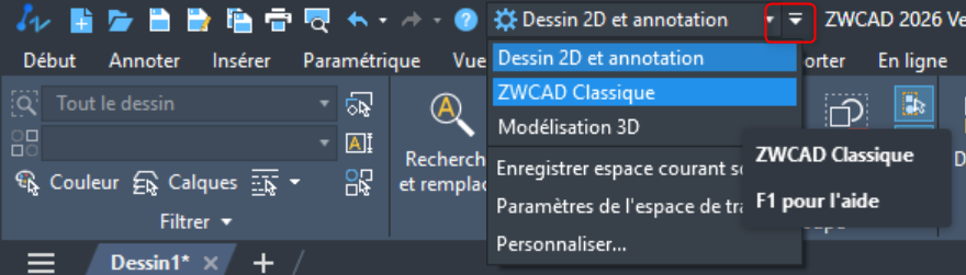 Changer le mode d’interface ZWCAD
