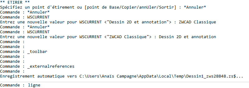 Certaines fonctions sont disponibles à la fois via la ligne de commande et via une boîte de dialogue. Dans de nombreux cas, vous pouvez saisir un tiret devant la commande pour supprimer la boîte de dialogue et afficher les invites directement dans la ligne de commande.