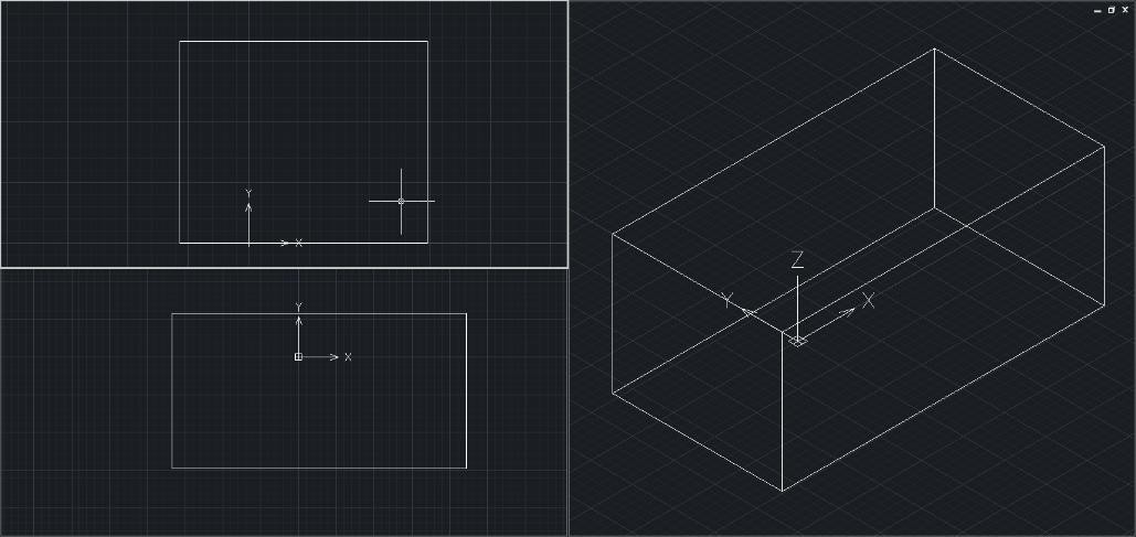 Lorsque vous dessinez, les modifications effectuées dans une fenêtre sont immédiatement visibles dans les autres. Vous pouvez basculer d'une fenêtre à l'autre à tout moment, même au milieu d'une commande, en cliquant sur la barre de titre de la fenêtre.
