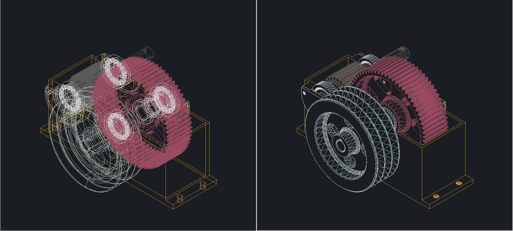 Lorsque la vue actuelle est en mode ombré, le masquage des lignes cachées sur les objets solides supprime également le rendu du maillage et affiche plutôt les objets en utilisant une représentation filaire avec les lignes arrière masquées.
