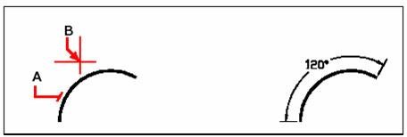 Pour coter l'angle sous-tendu par un arc, sélectionnez l'arc (A),