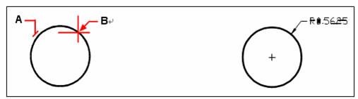 Sélectionnez le cercle (A), puis spécifiez l'emplacement de la ligne de cote (B).