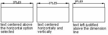 La justification et d'autres paramètres peuvent affecter l'alignement vertical du texte. Si vous sélectionnez Alignement horizontal, le texte situé entre les lignes d'extension et centré sur la cote est placé horizontalement, comme illustré dans la figure de gauche ci-dessus.
