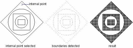 En général, les limites sont définies en analysant tous les objets fermés. Dans le cas de dessins complexes, la définition des limites par l'analyse de tous les objets visibles ou partiellement visibles peut prendre beaucoup de temps. Dans ce cas, vous pouvez gagner du temps en hachurant une petite zone d'un dessin complexe en définissant un ensemble d'objets dans le dessin à utiliser pour déterminer les limites de hachure.