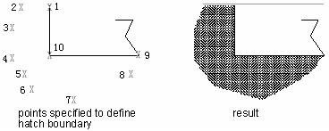 Vous pouvez définir une limite de hachure composée de plusieurs points manipulés à partir de l'option Limite de la commande -HACHURES ou -BHACHURES. Le système demande si les limites doivent être conservées à la fin du hachurage. Si vous choisissez de ne pas conserver les limites, le motif de hachure est créé sans limites.
