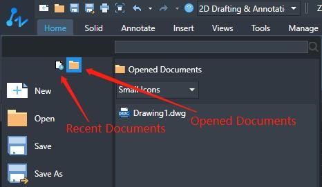 Parcourez les fichiers à l'aide des boutons Documents récents ou Documents ouverts