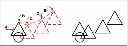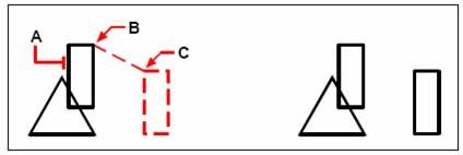 Objet à copier (A), point de base (B) et point de déplacement (C) Résultat