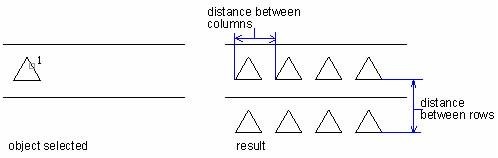 Pour créer un tableau rectangulaire, sélectionnez l'objet à copier (A), saisissez le nombre de lignes et de colonnes, puis indiquez