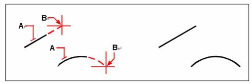Sélectionnez l'objet (A), puis spécifiez le deuxième point de rupture (B)