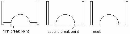 Vous pouvez couper des arcs, des cercles, des ellipses, des lignes, des polylignes, des rayons et des lignes de construction. Lorsque vous coupez des objets, vous devez spécifier deux points pour la rupture. Par défaut, le point utilisé pour sélectionner l'objet devient le premier point de rupture ; toutefois, vous pouvez utiliser l'option Premier point pour définir un point de rupture différent de celui utilisé pour la sélection.