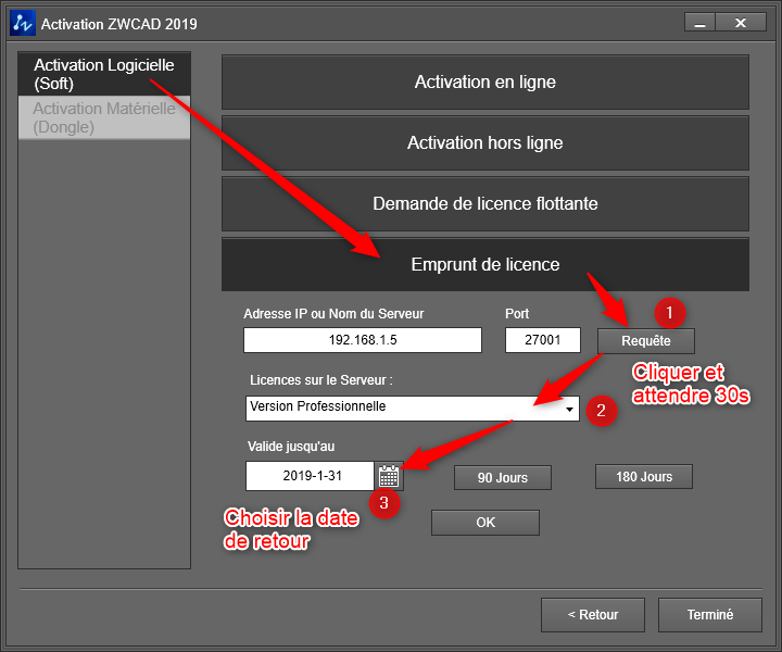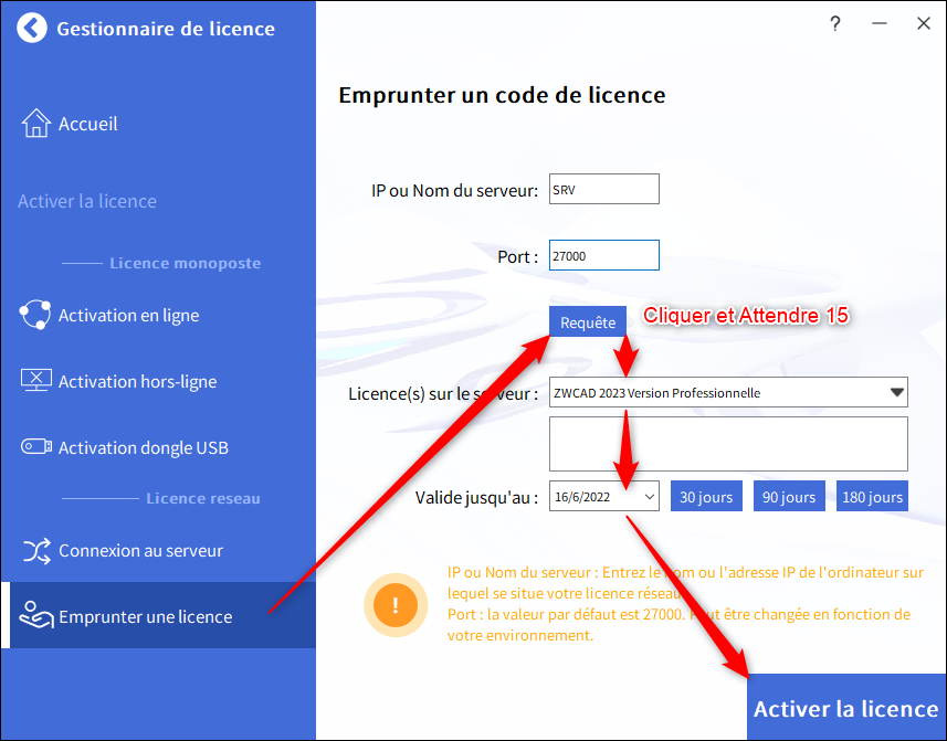L'emprunt de licence réseau vous permet d'utiliser ZWCAD sans connexion au serveur de licence pour une durée maximale de 6 mois.