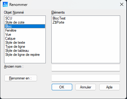 Le nom du bloc est attribué automatiquement par ZWCAD. Comme il est peu parlant, il est conseillé de le renommer ensuite.
